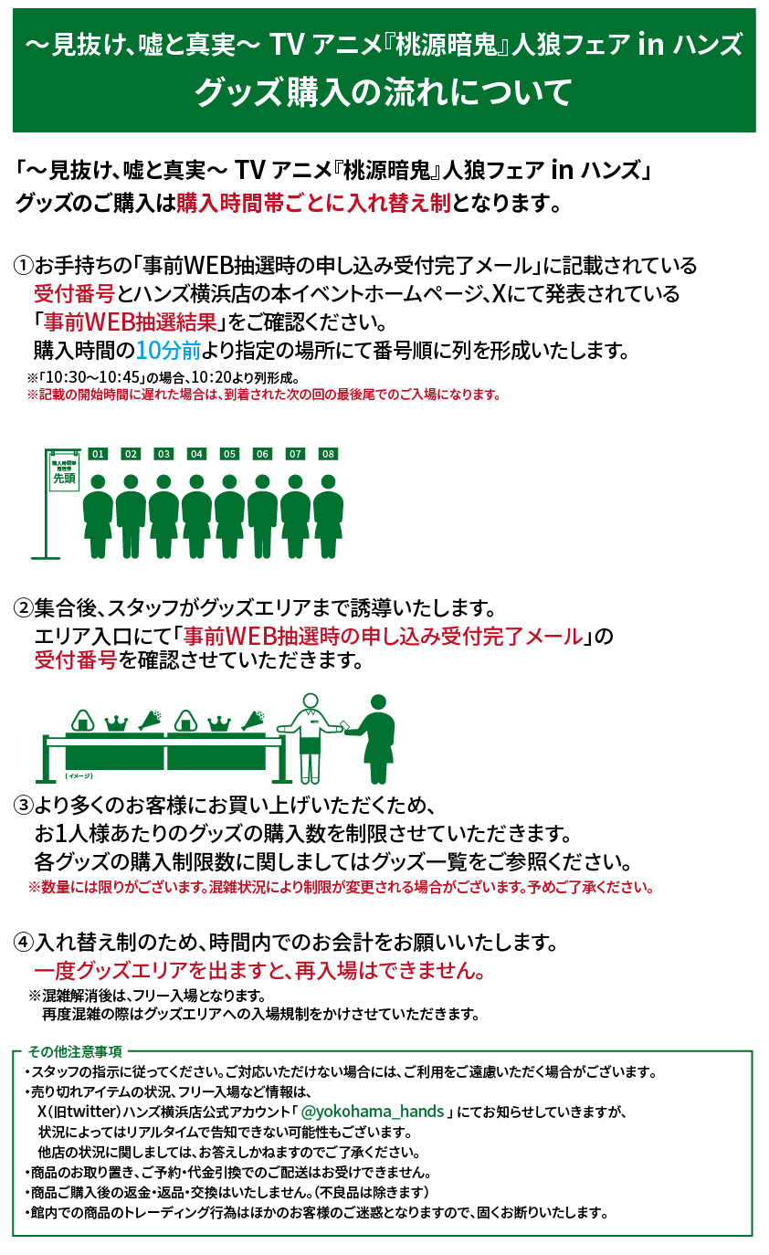 「~見抜け、嘘と真実~ TVアニメ『桃源暗鬼』人狼フェア inハンズ」と題した