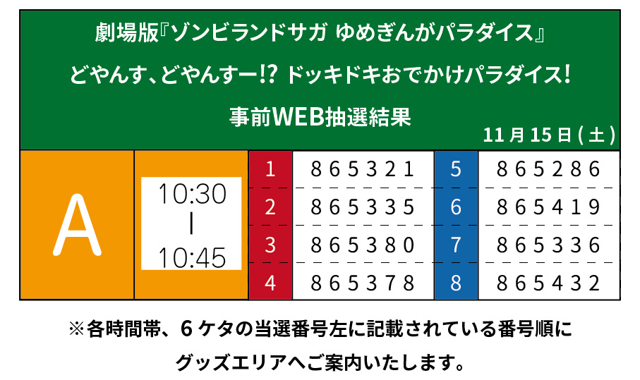 【横浜店】劇場版『ゾンビランドサガ ゆめぎんがパラダイス』どやんす、どやんすー!? ドッキドキおでかけパラダイス! ※事前WEB抽選結果発表